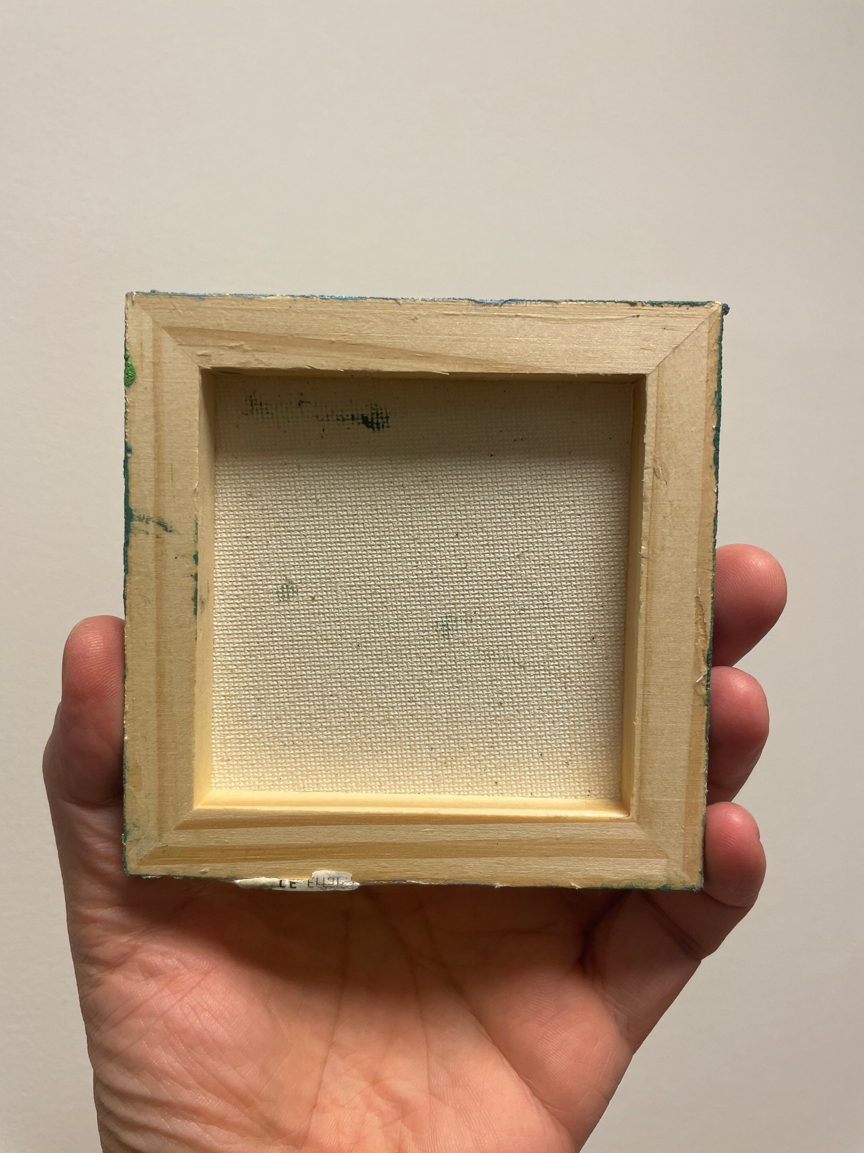 作品サイズは 10 × 10 cm。キャンバスに油彩で制作され、仕上げにはワニス加工を施し、色彩と表面を保護しています。本作品は一点もののオリジナル作品で、真正証明書(Certificate of Authenticity)が付属します。